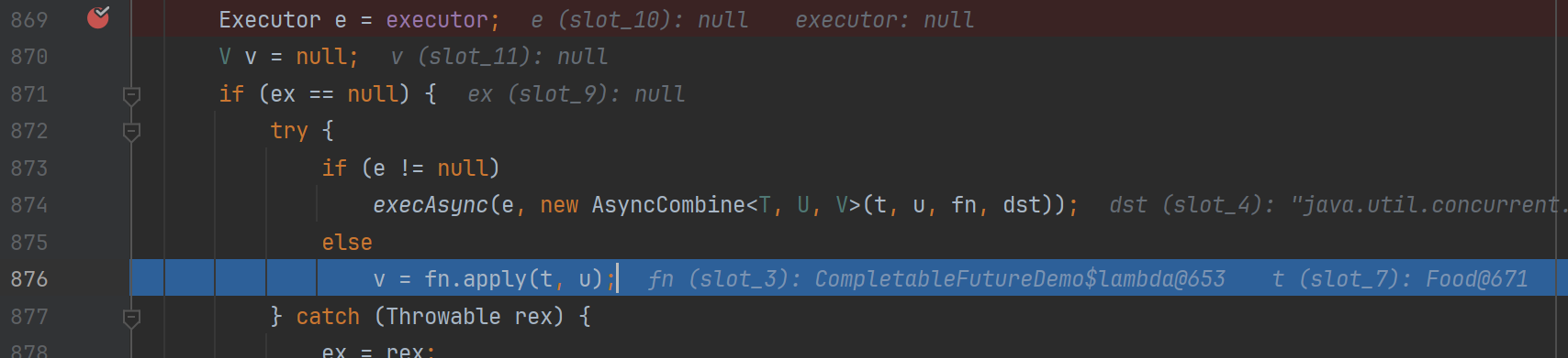 继续往后走,程序依赖于Unsafe类,对两个任务的返回值、异常进行了一系列的CAS判断,如果在这期间两个任务都执行完毕,且均未抛出异常,程序则会执行二元函数BiFunction的apply方法,也就是lambda表达式内的方法,并把两个任务的结果传递进去: